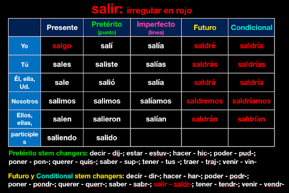 From your own life or interests, write sentences using each person of each tense, one tense at a time … en español. HOWEVER, only write these sentences for the irregular forms of the verb (in RED). All the other forms follow the regular conjugation rules. This will cut the number of sentences you write down dramatically.